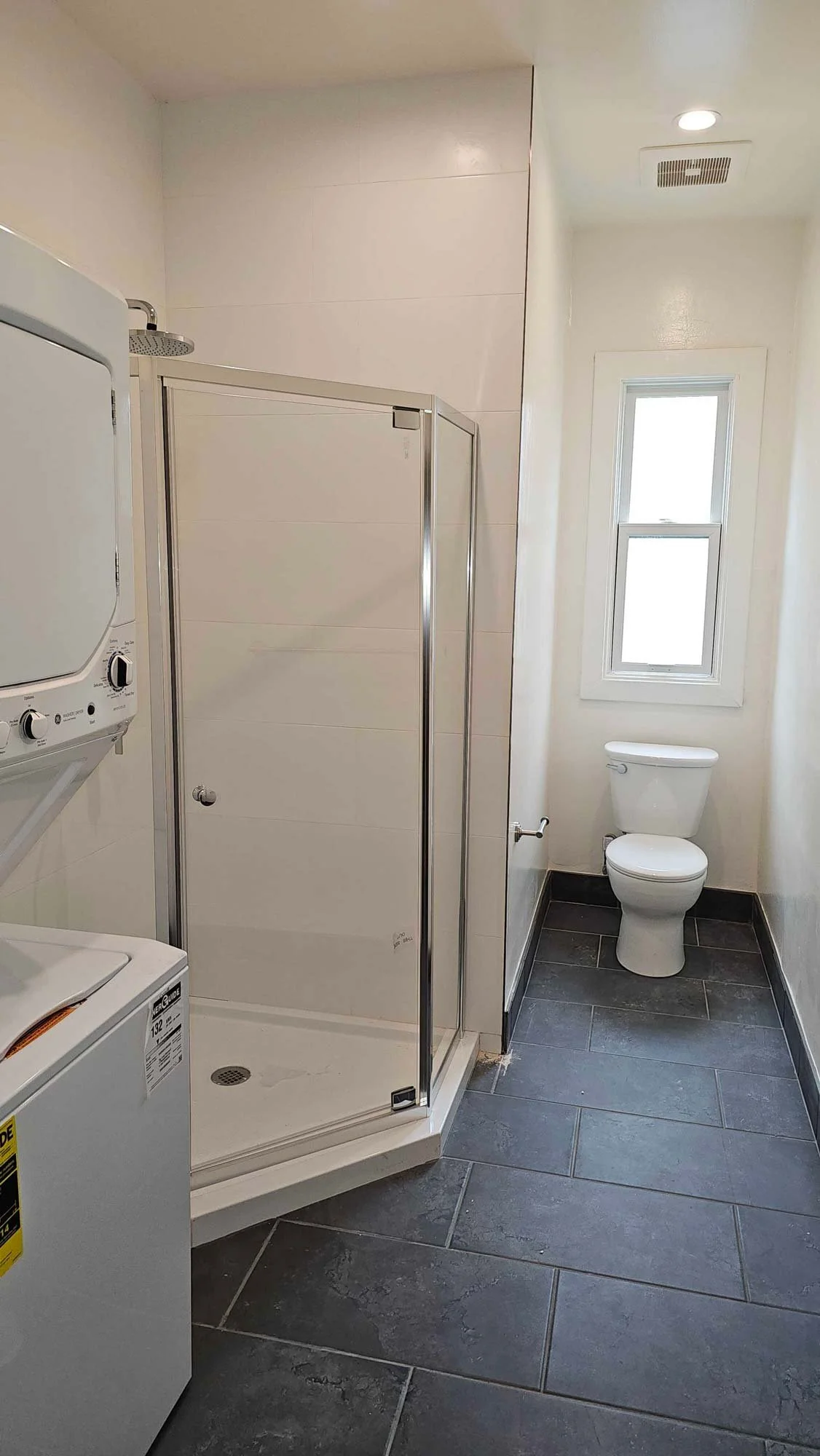 There are three closets within the unit for personal storage and clothing. The bathroom has been fully remodeled all new tile shower stall and laundry machine.